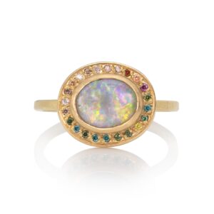 Swiss Blue Topaz, Green Tourmaline and Garnet Ring