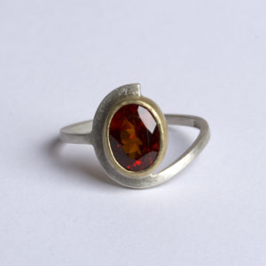 Oxidised silver and 18ct Yellow gold Garnet Ring