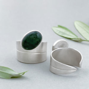 Olive Leaf Wrapped Moss Agate Ring