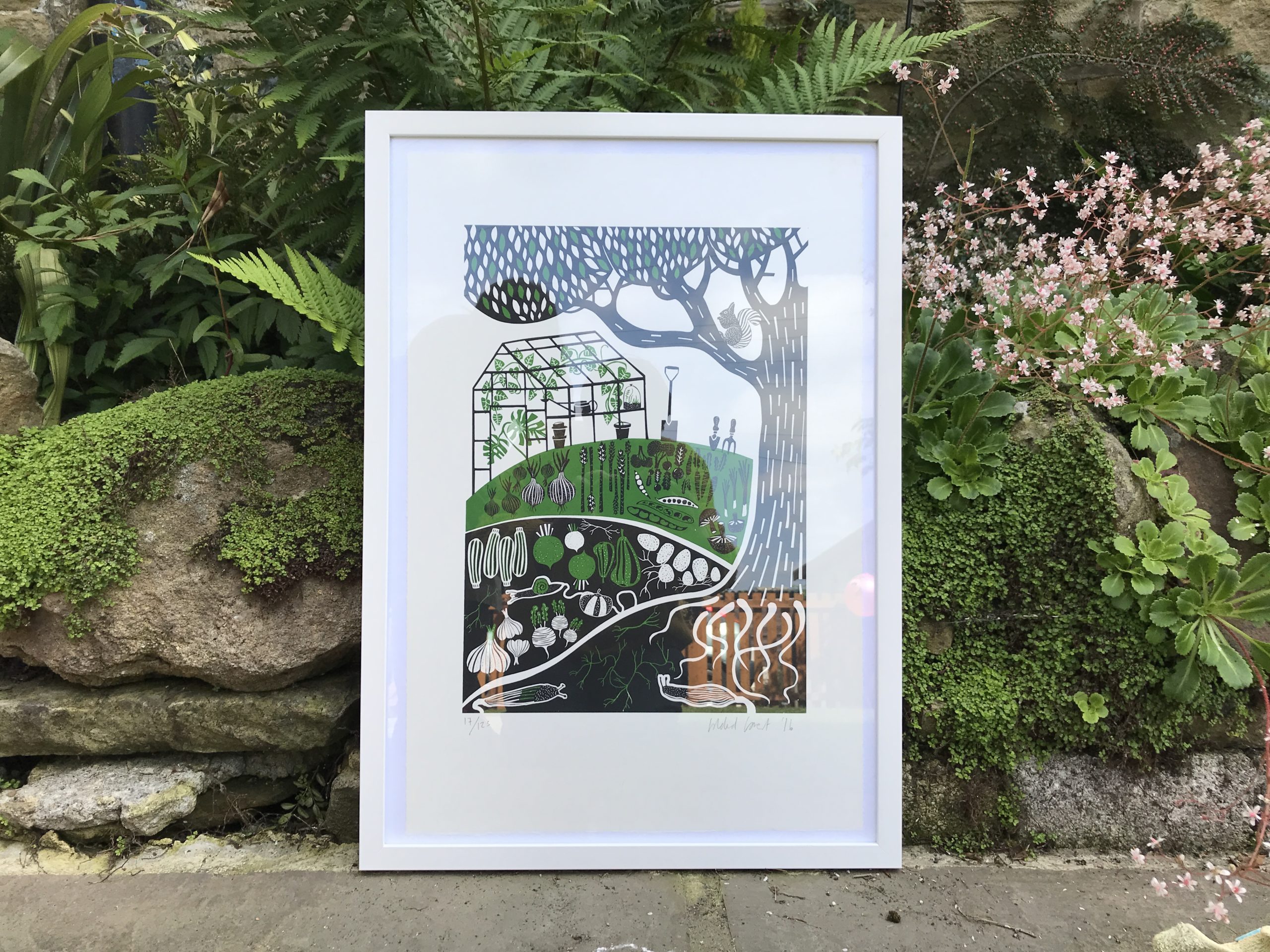 Packaged with eco friendly cellophane and a card about the artist’s and printing process found inside