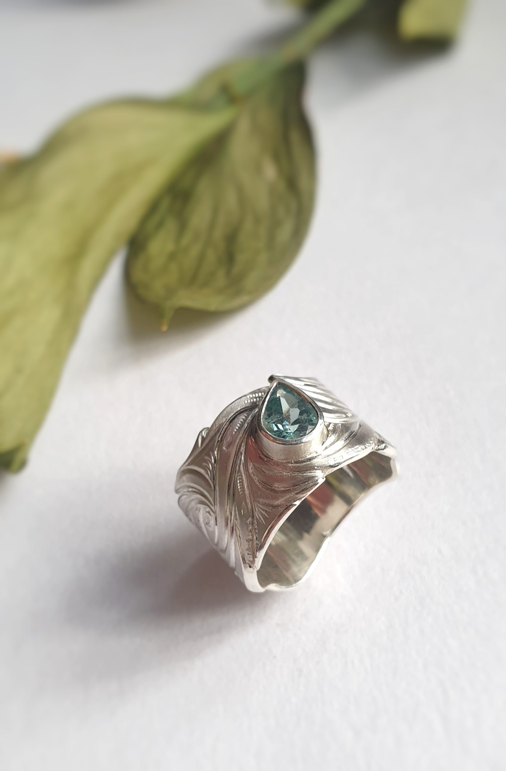 Pear shaped faceted Aquamarine stone set in silver