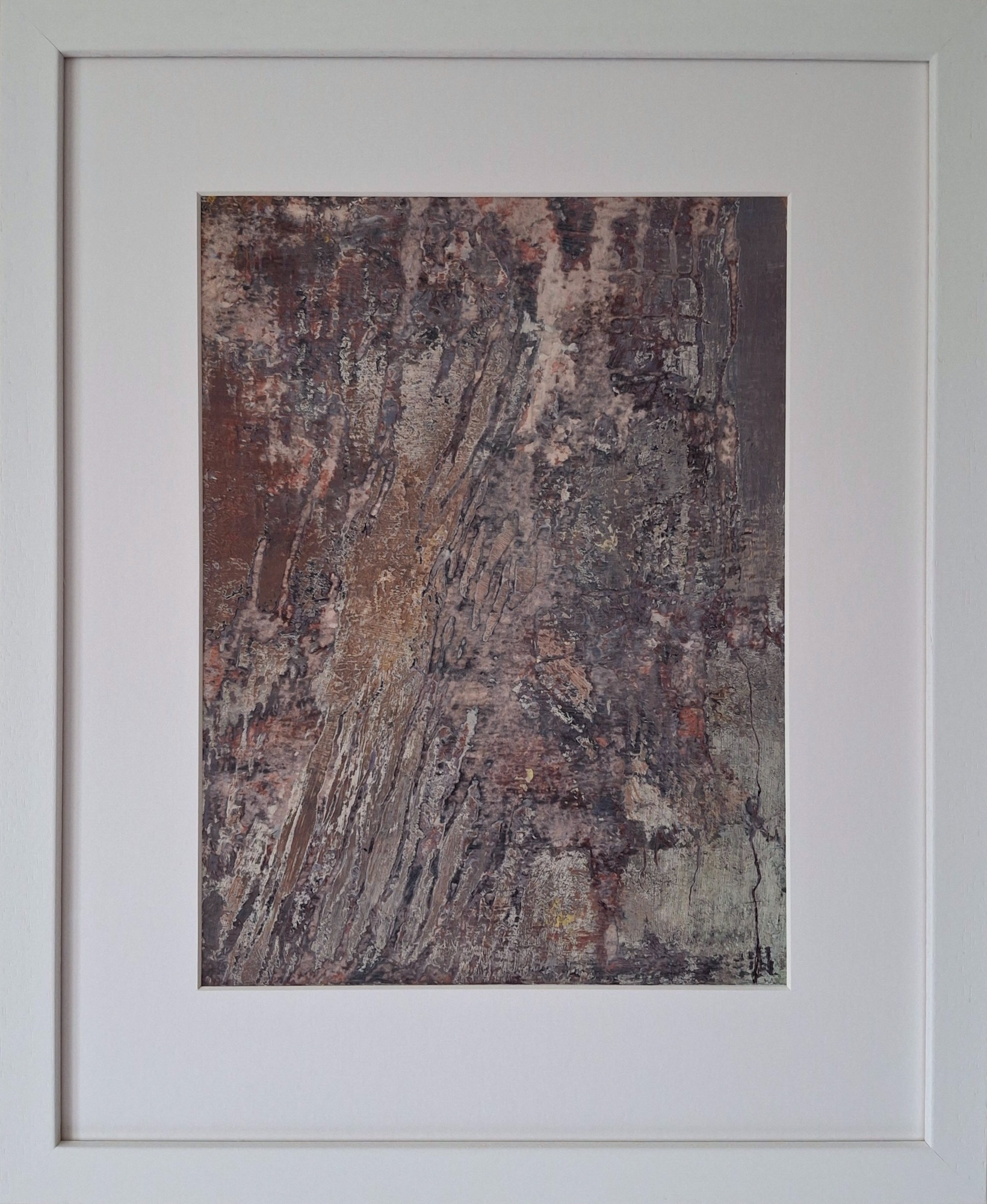 A stunningly beautiful textured mix media painting, from Claire Ninham’s moss and lichen series. All these paintings observe the closeness of textures we see everyday on our iconic drystone walls.  The oil and cold wax creates a beautiful richness of texture that you see when you are drawn to observe the painting closer.