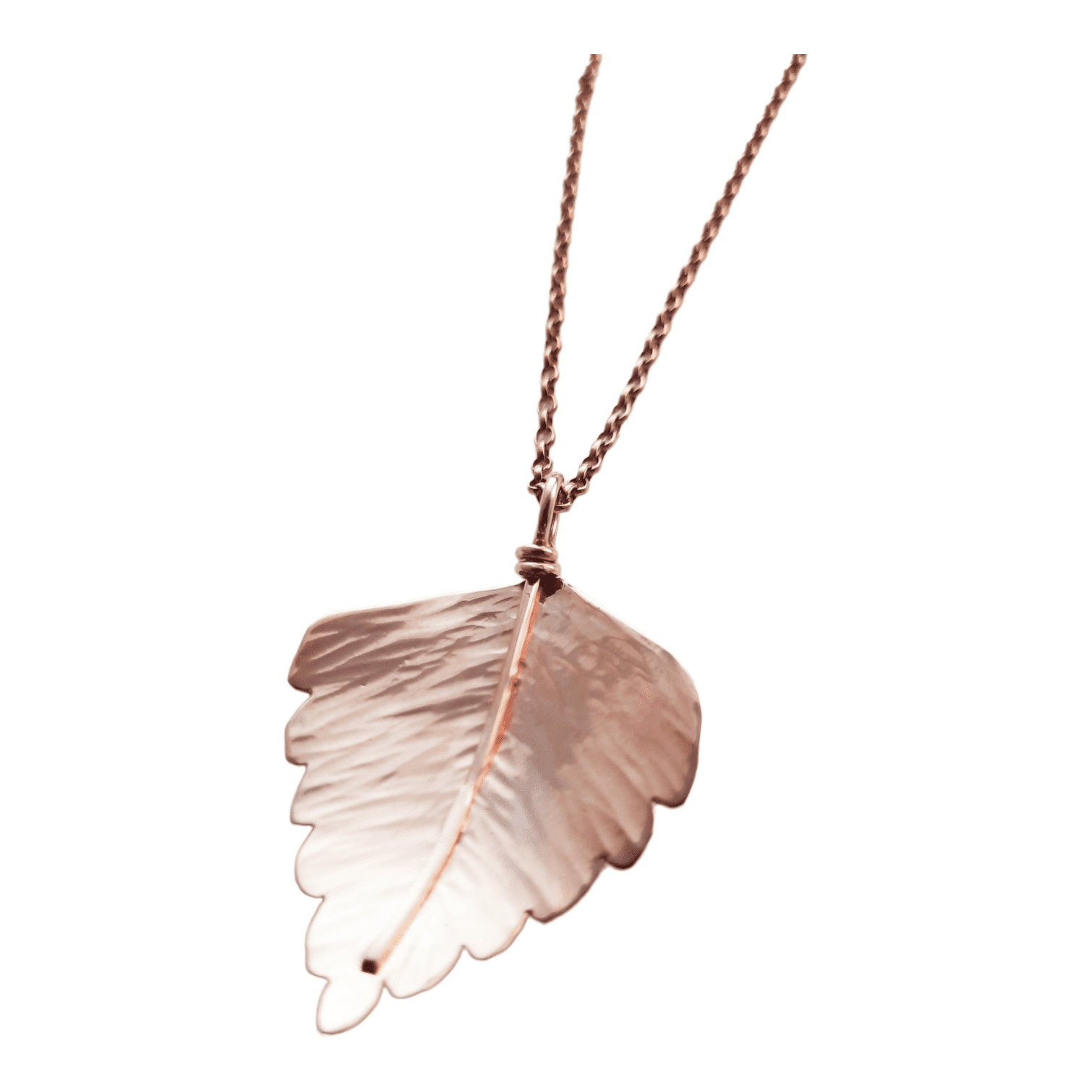 Clare collect’s leaves and uses them as templates to create this collection of jewellery.