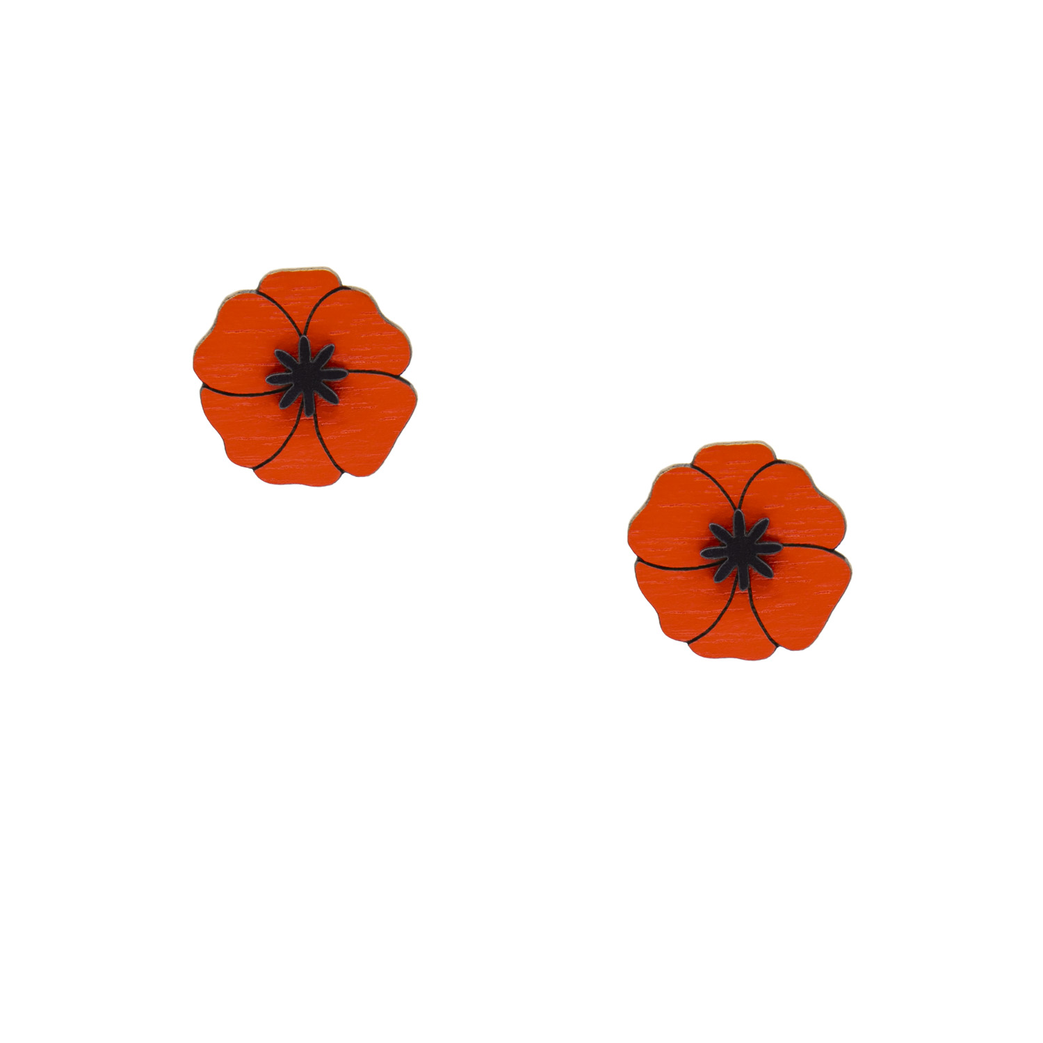 Stud earrings with poppy flowers that measure 21 x 21mm