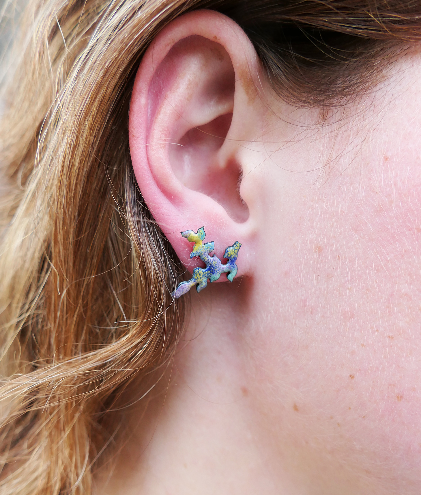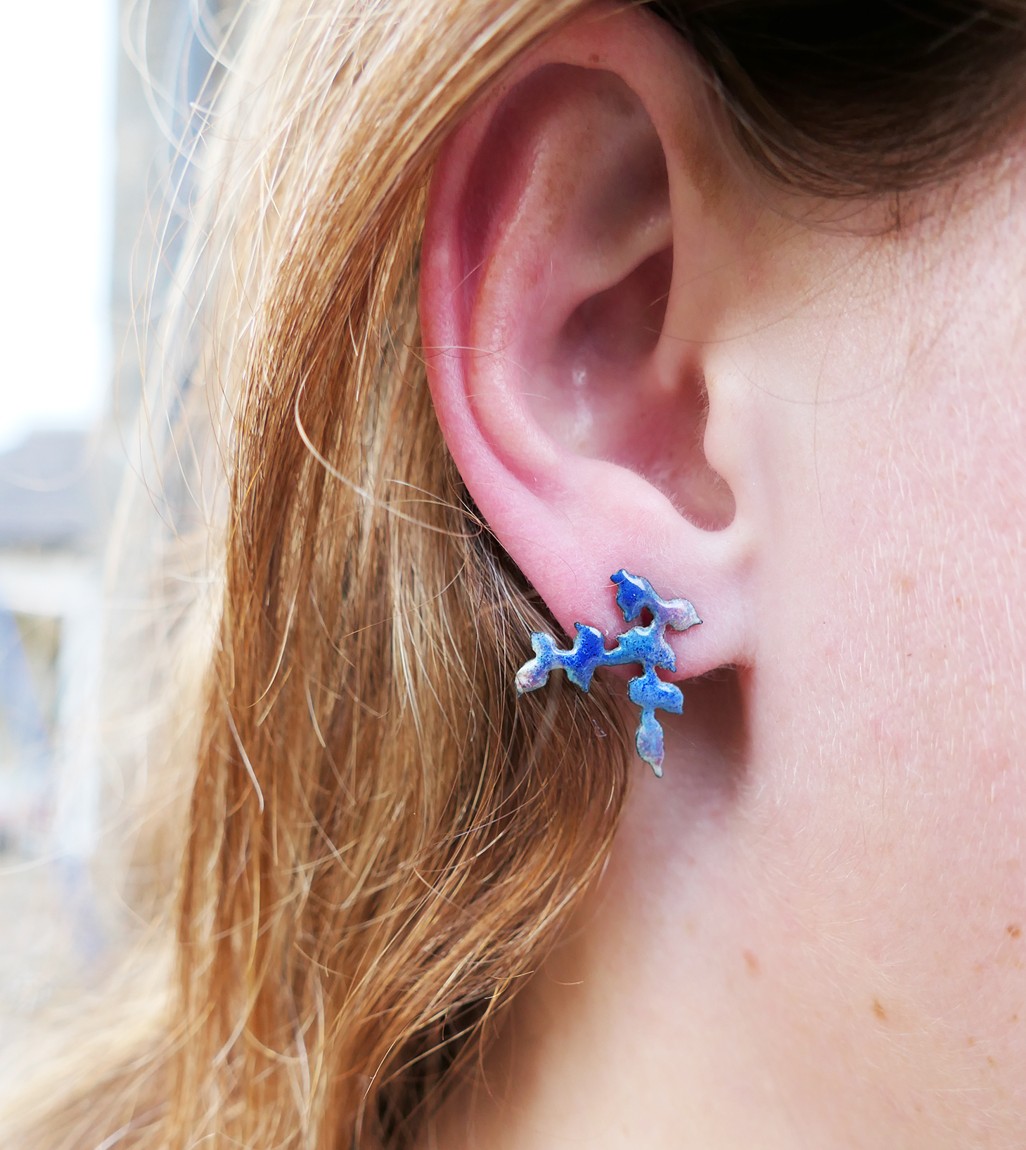 Enamelled on the front and a simple colour is applied to the back, their is a solid sterling silver 0.8mm post and butterfly clip added to each earring