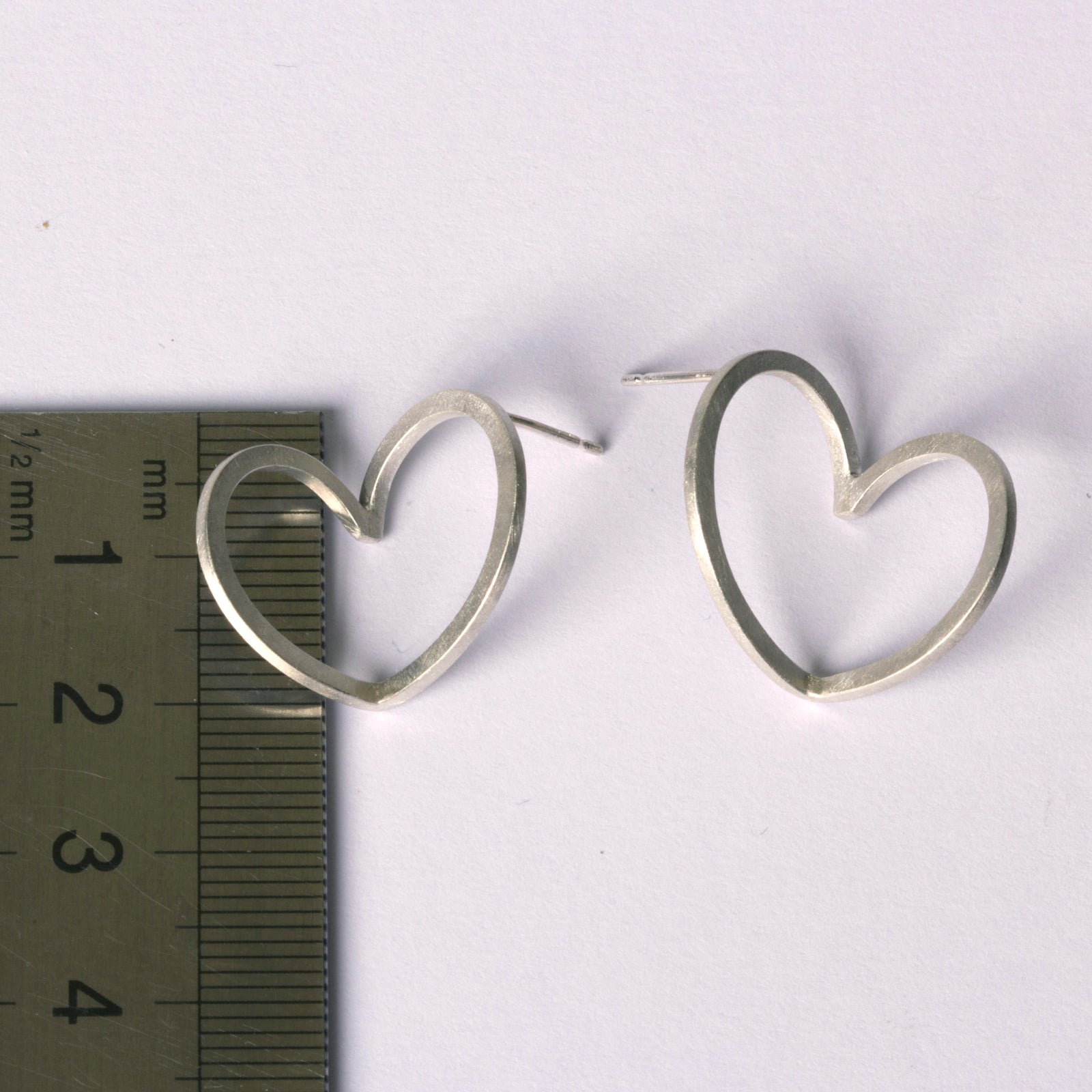 The Angles & Curls collection is based on sketches and studies of ironwork within architecture. The Folded Curl motif recurs throughout the collection as a core element. A play on traditional heart studs. Fun, easy to wear, great for gifts! The sterling silver is finished with a glass brush finish that creates a matt glow.