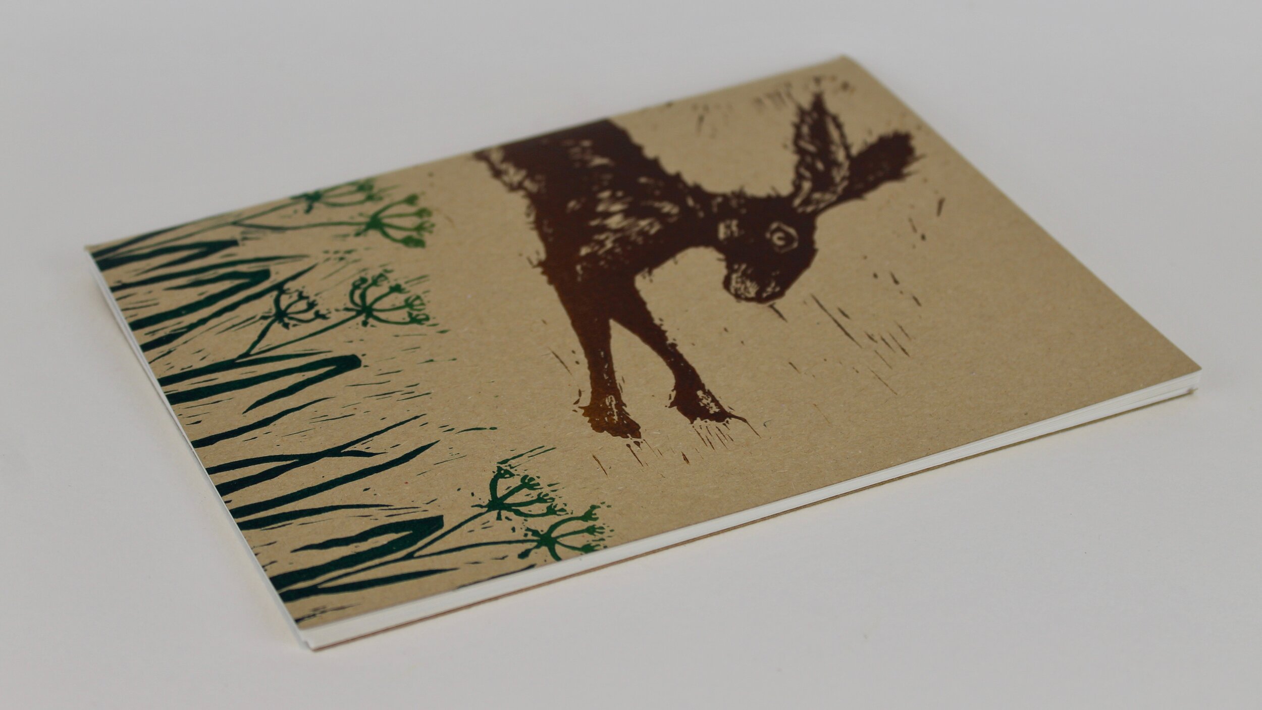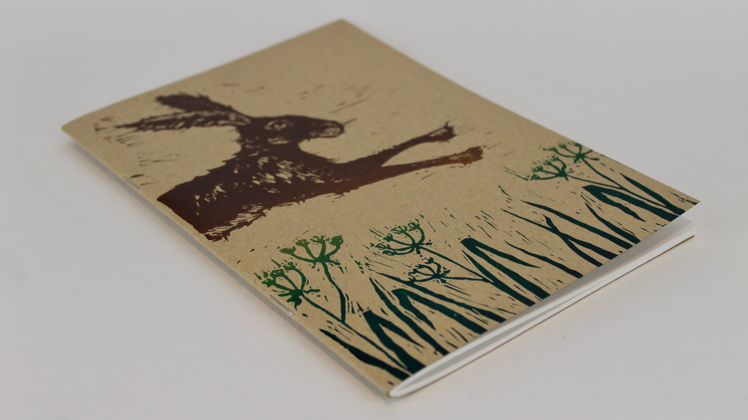 This is a soft back Lino printed notebook/ sketchbook with Kraft card cover and thick paper inside. Blank Pages