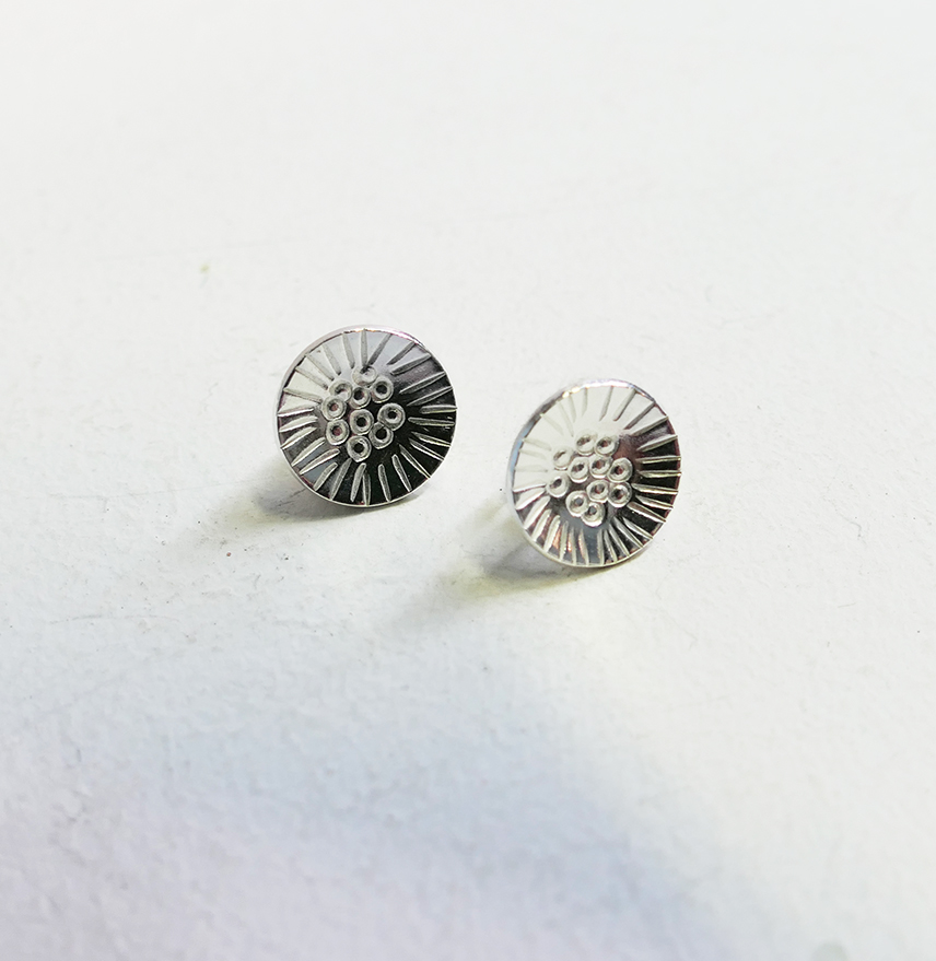 A lovely pair of sterling silver studs perfect fr everyday wear with a hint of botanical stamping.