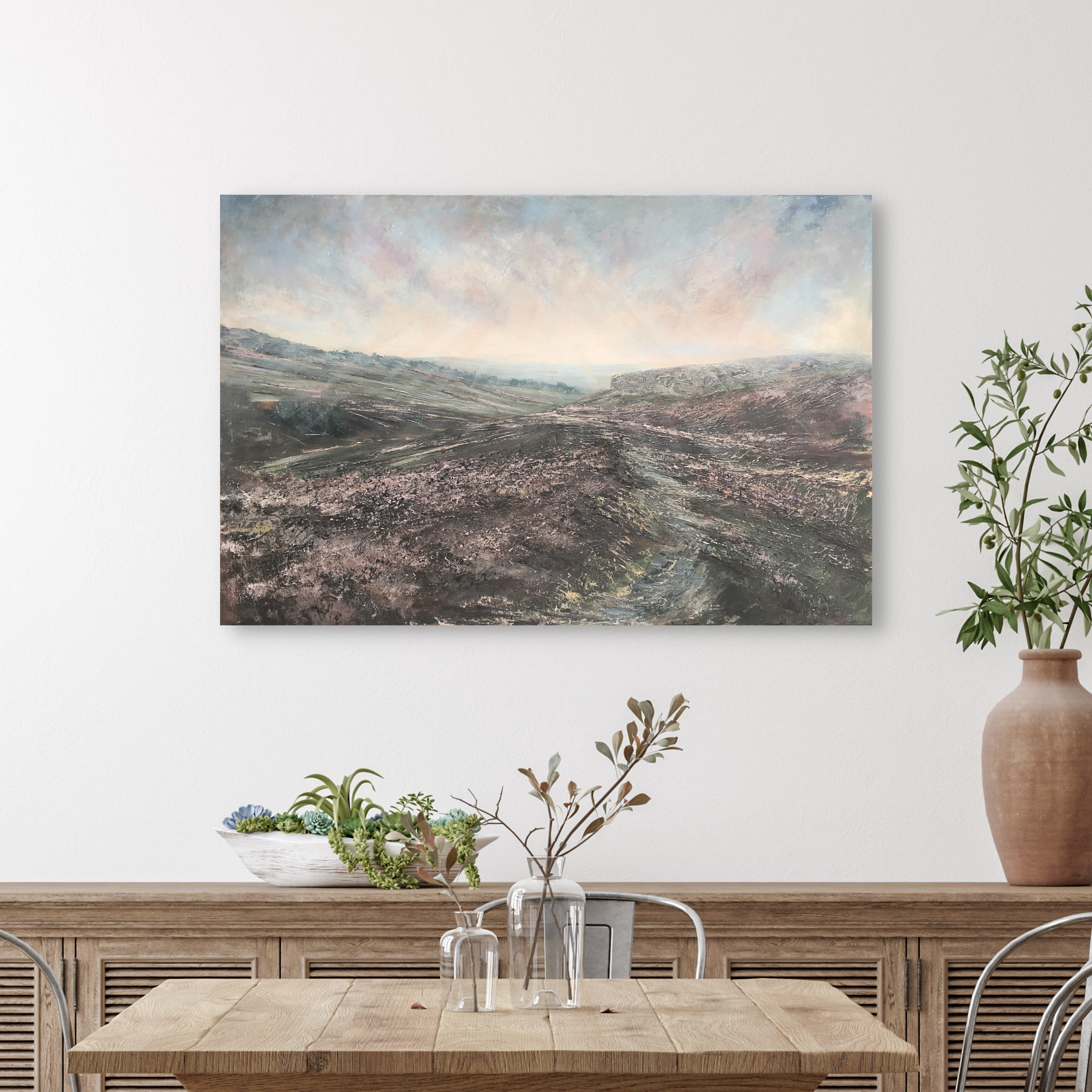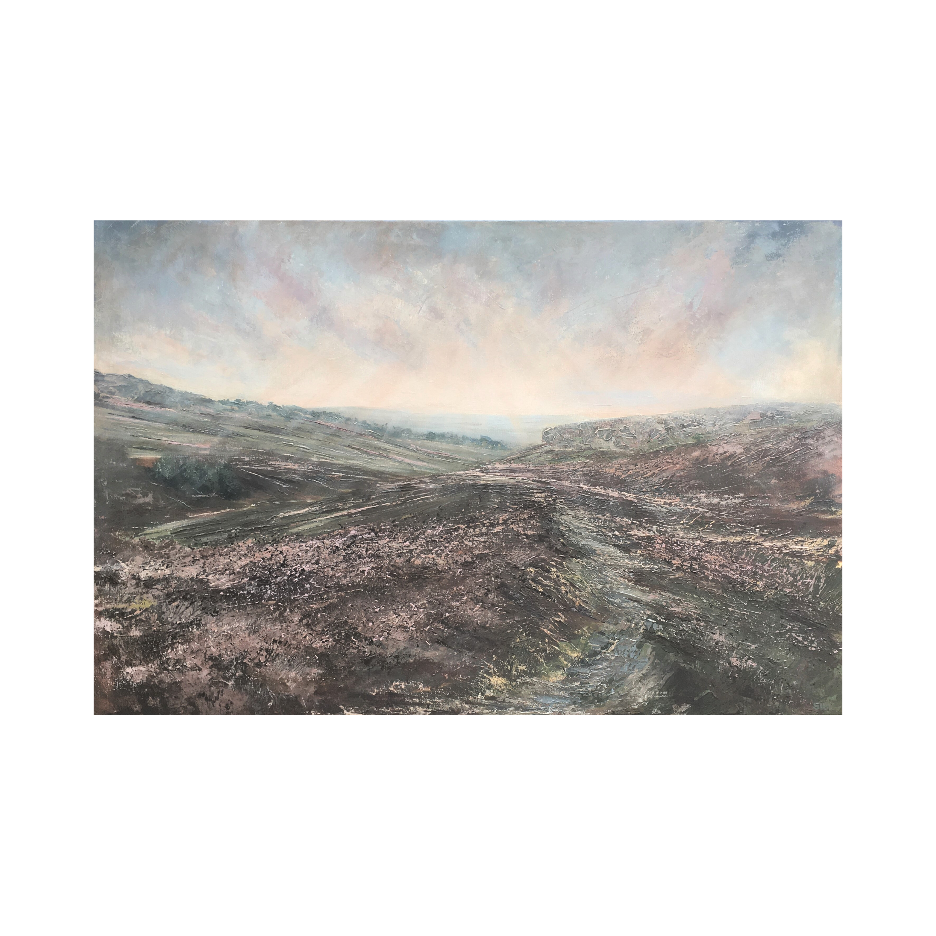 A calming Yorkshire Moorland painting that captures the moodiness on a sunny Yorkshire day.