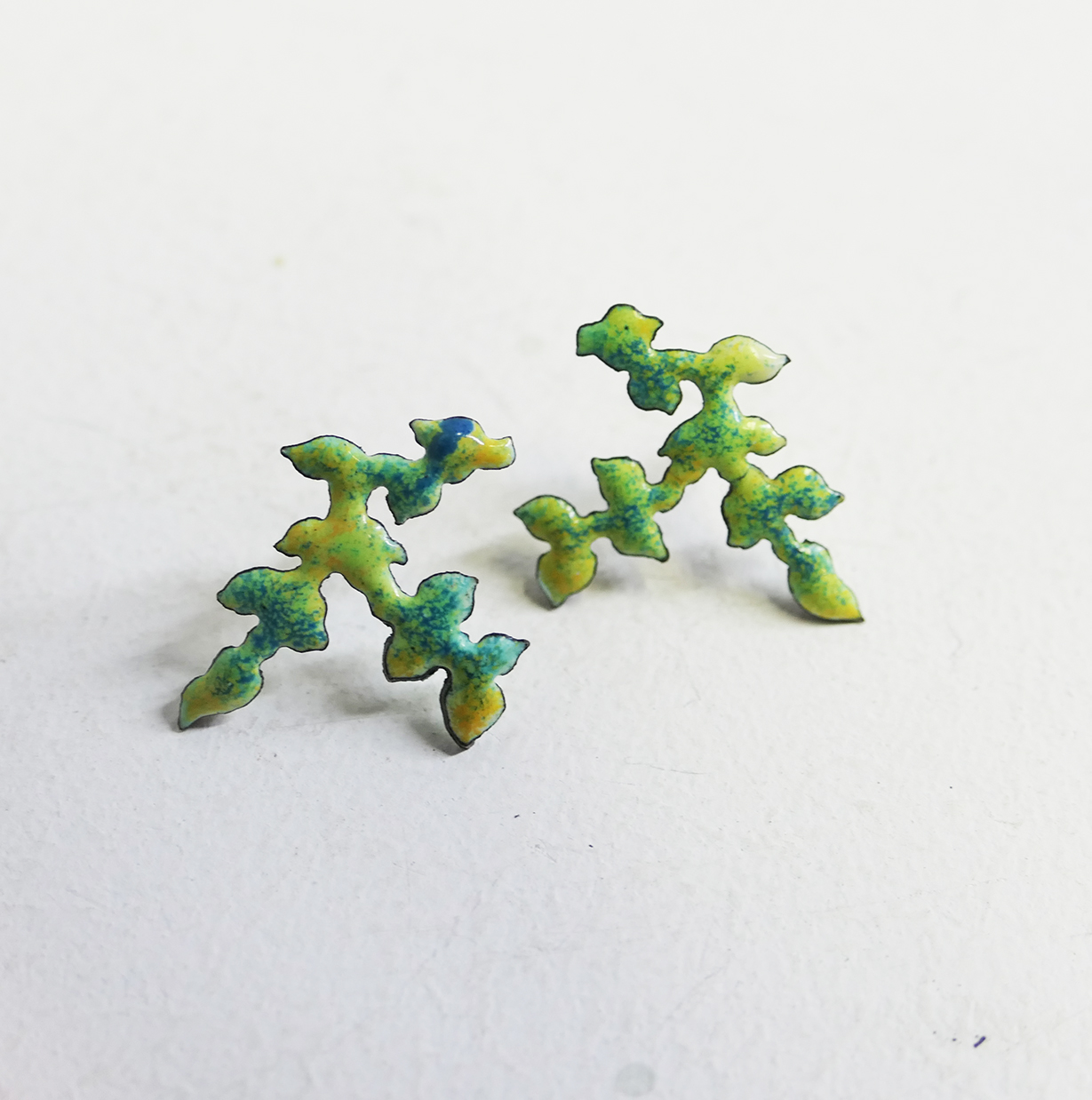 Enamelled on the front and a simple colour is applied to the back, their is a solid sterling silver 0.8mm post and butterfly clip added to each earring