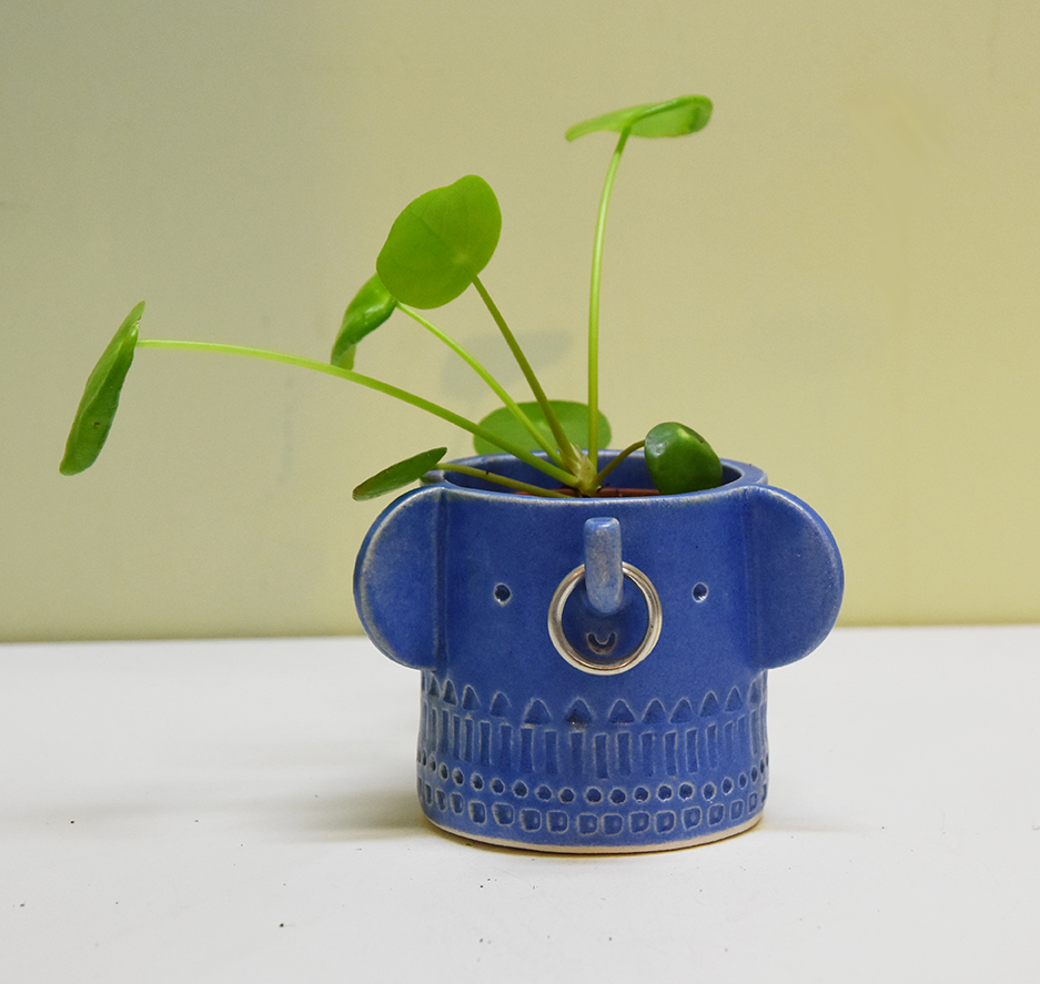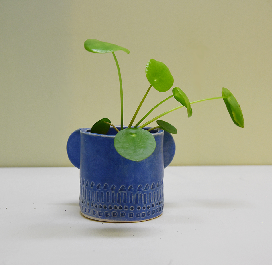 Glazed with Matt Navy Blue glaze and a stamped geometric print with trunk detail for a ring holder