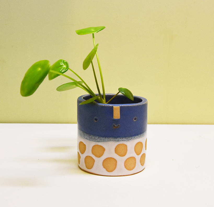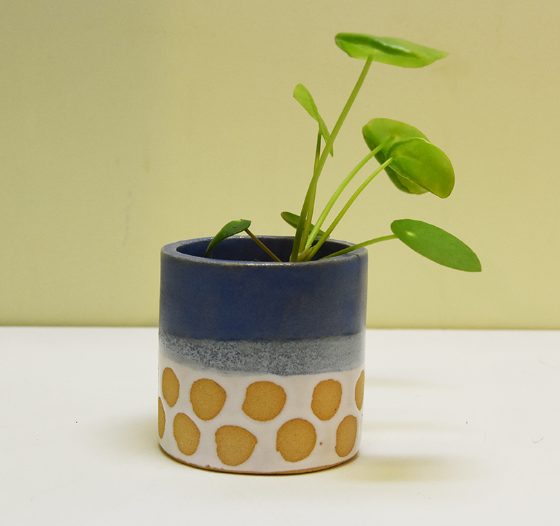Glazed with Matt Navy Blue glaze and a shiny white glaze with unglazed spot