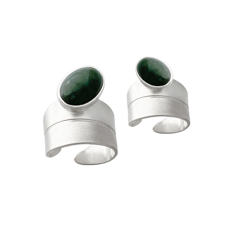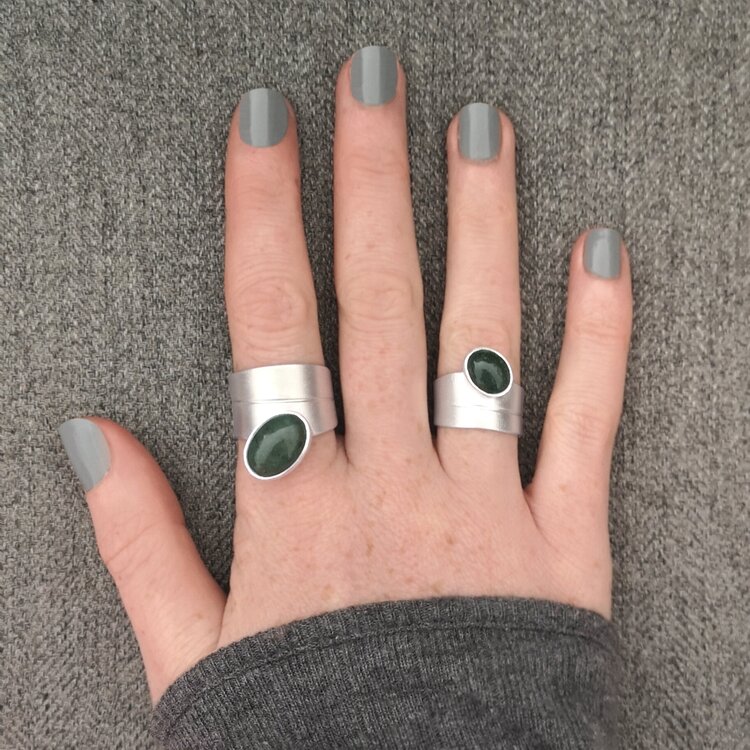 The oval moss agate is beautifully matched with the silver band and is 14mm x 100mm oval.