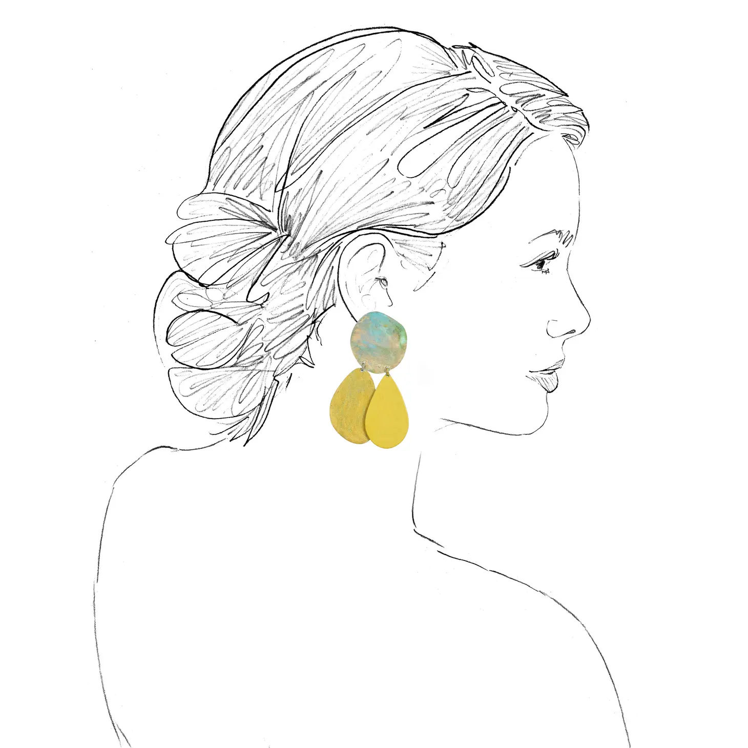 Hand painted brass with natural patina. As our patina is developed using a natural salt water process please note that the finish will vary from piece to piece in colour and intensity. Sterling silver posts. Nickel and lead free.