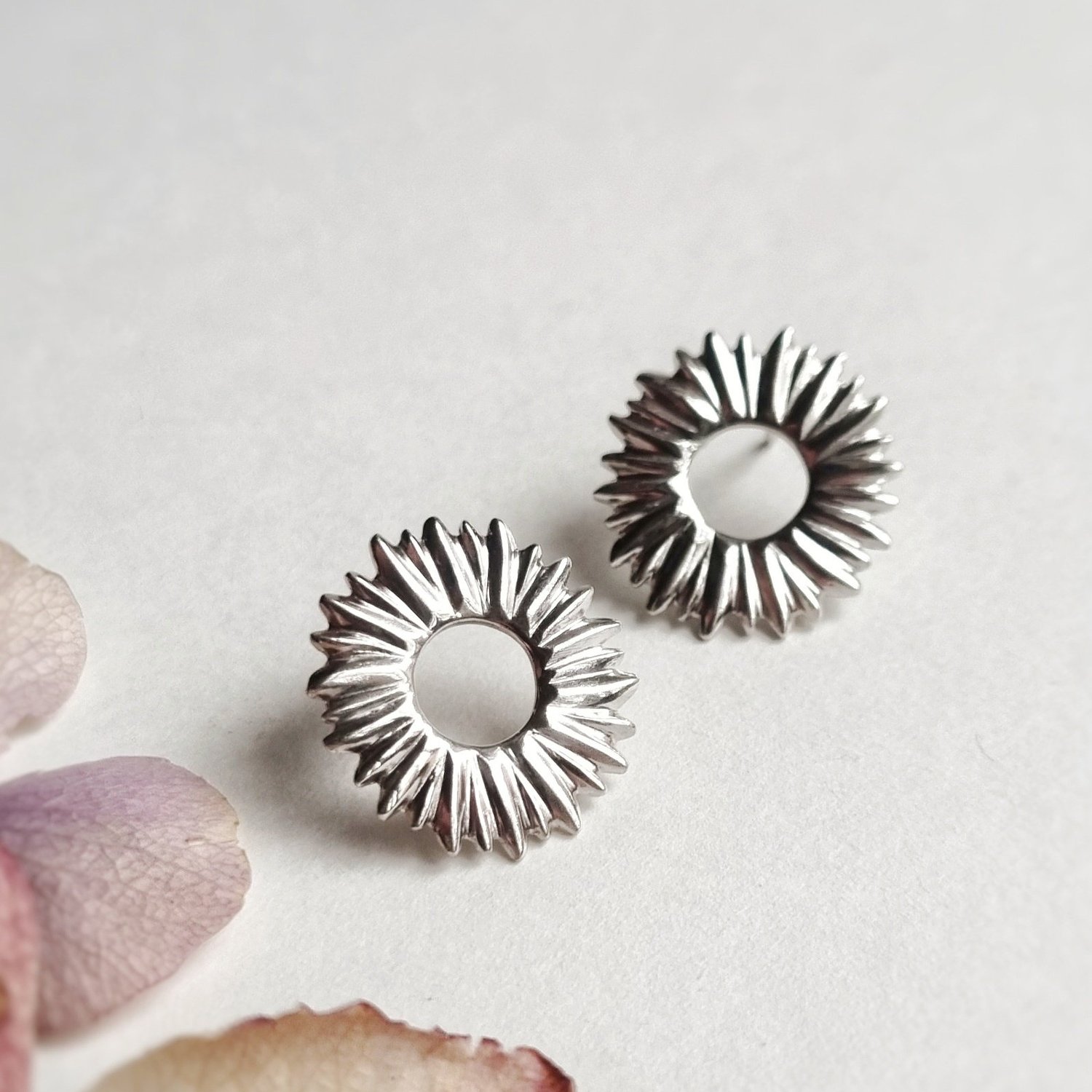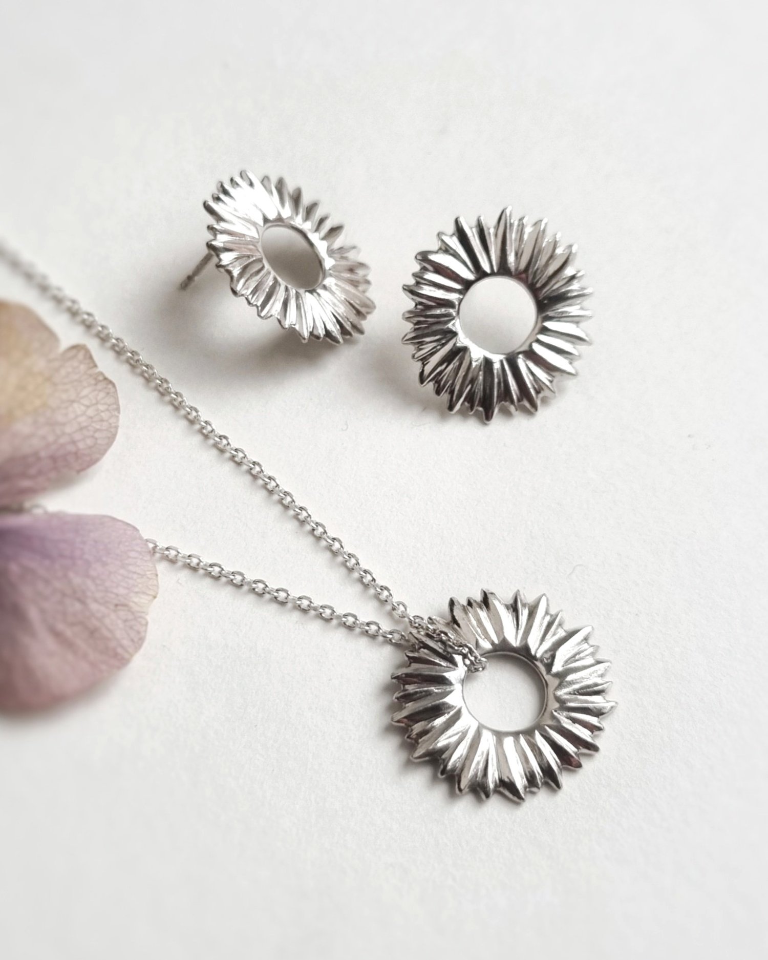 Beautiful silver circles of radiating sunshine! Easy to wear but also add an extra bit of sparkle to every day! Why not match these earrings with the pendant for the full on look.