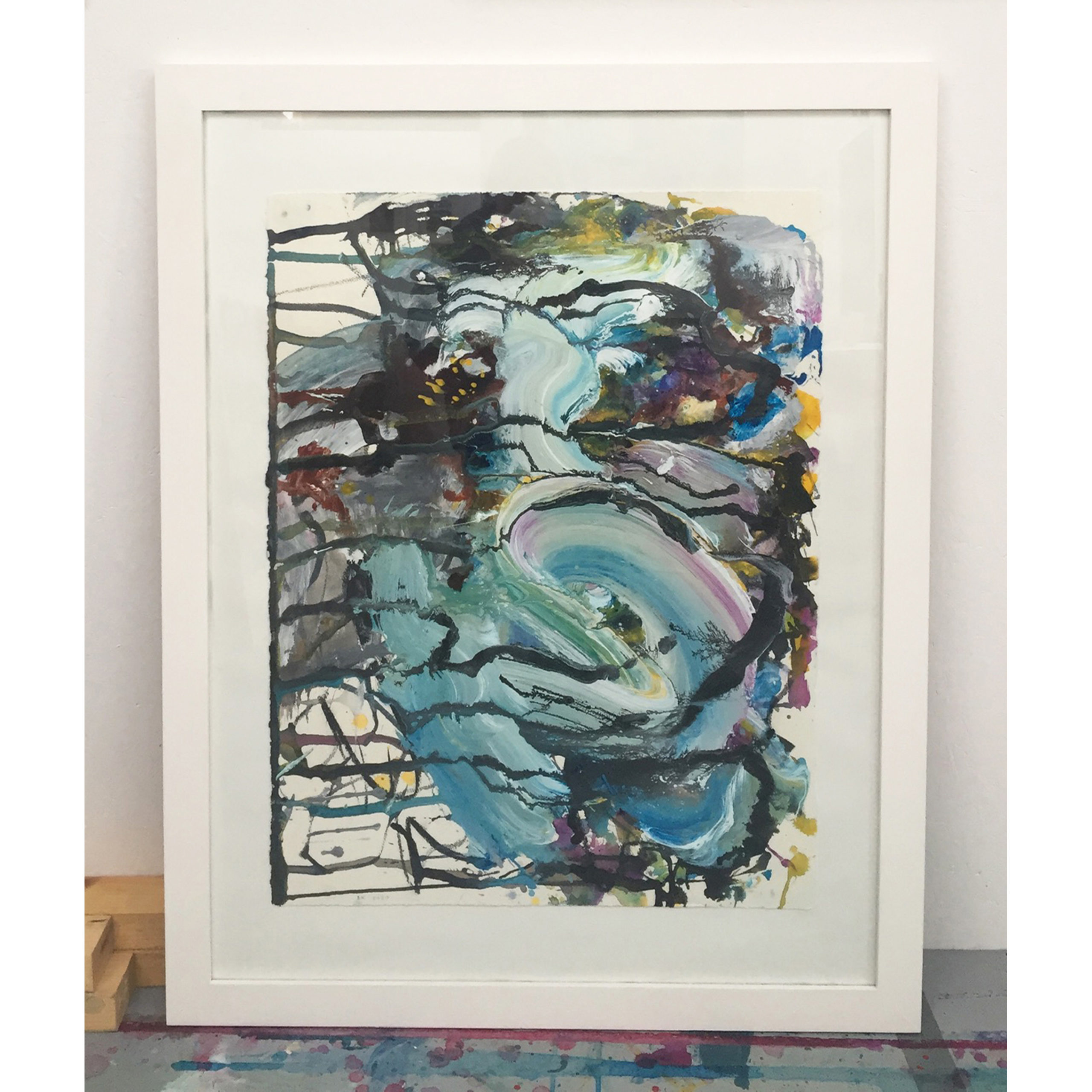 Mix Media Collage on paper, with acrylic, sand and watercolour paint, charcoal and graphite