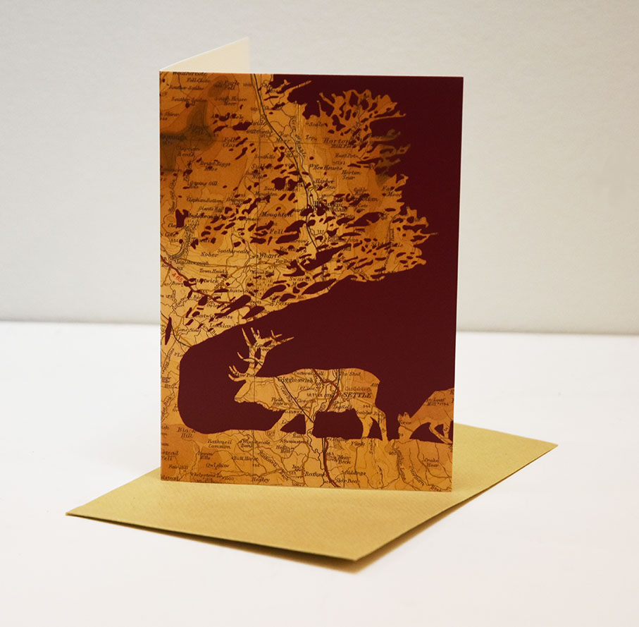 A beautiful image of the well loved Deer next to an old oak tree. This card is also apart of our bespoke map range and covers the Settle area as far as Horton in Ribblesdale were the iconic penny -ghent walk is.