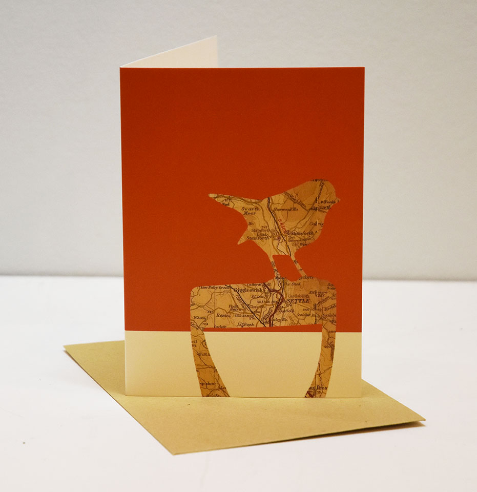 We love these bespoke cards by Kate Thornton designs incorporating maps of the local area. This one as captured a robin on a spade and the map involves all the surrounding areas of Settle.