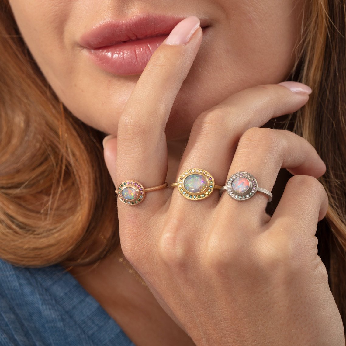 Our One-of-a-kind Opal Rings are handmade in our London studio using recycled gold and stones sourced from reputable suppliers. Each stone is carefully selected and set by hand to complete this handmade ring. This stone was cut by Ancients17 in the USA who works directly with the Opal miners, providing complete traceability.