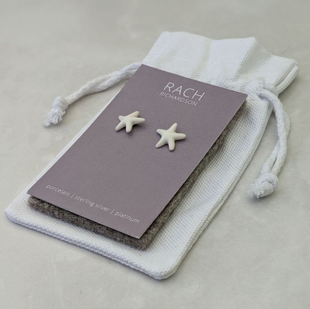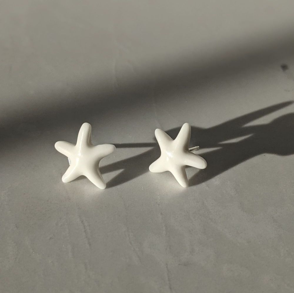 Hand crafted tiny shell earrings made from porcelain clay and finished with a white glossy glaze.