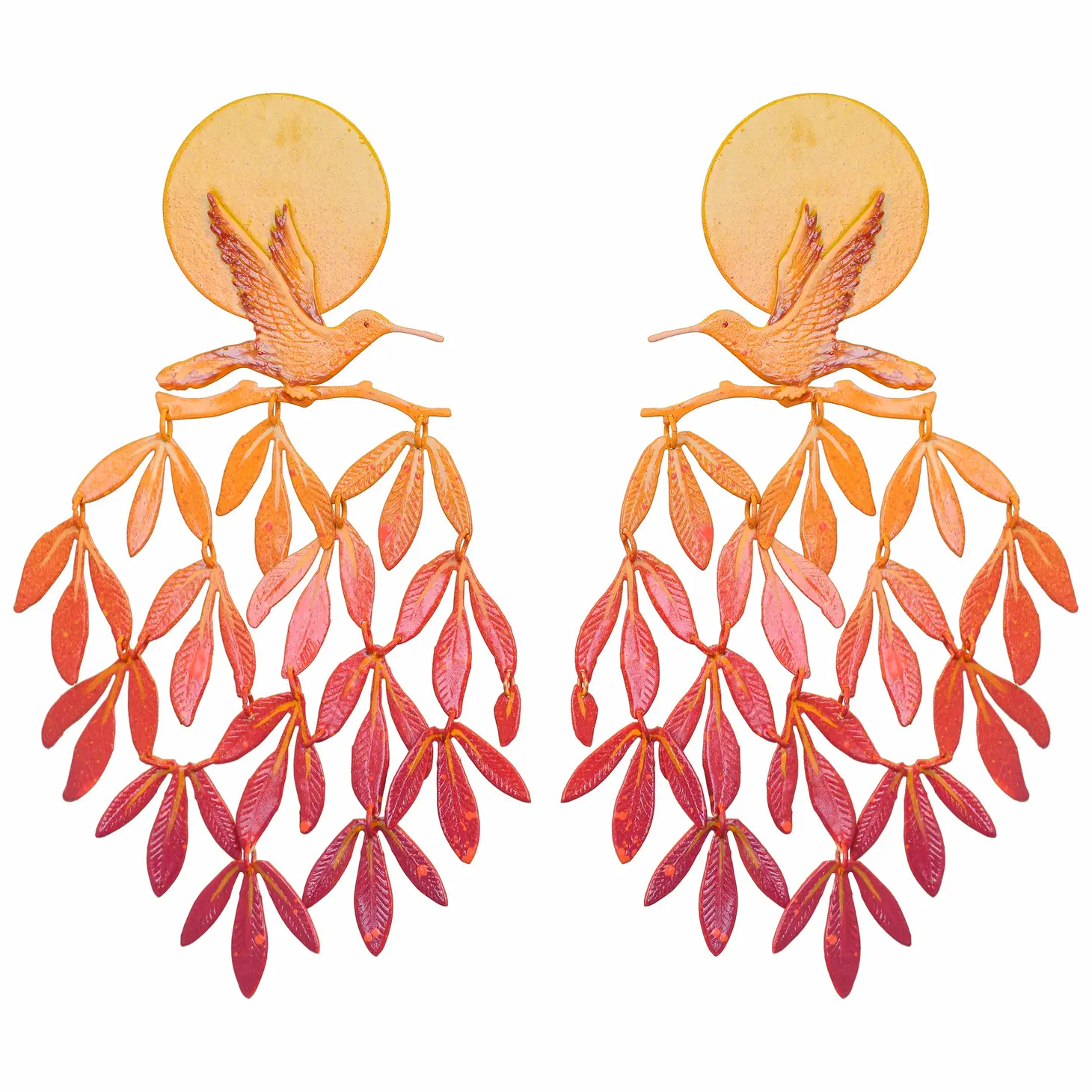A stunning statement pair of earrings bringing the tropical paradise to England. These earrings are perfect for any celebration bringing a magical statement to your earlobes and outfit.