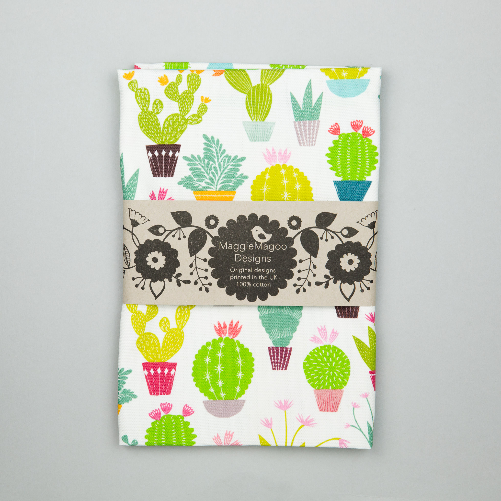 A fun colourful Cactus print tea towel in the light background design. We think these folklore inspired tea towels make the perfect house warming gift and can be used in the kitchen or equally is beautiful framed.