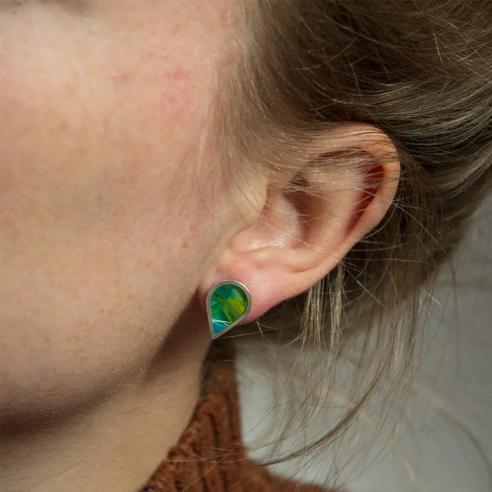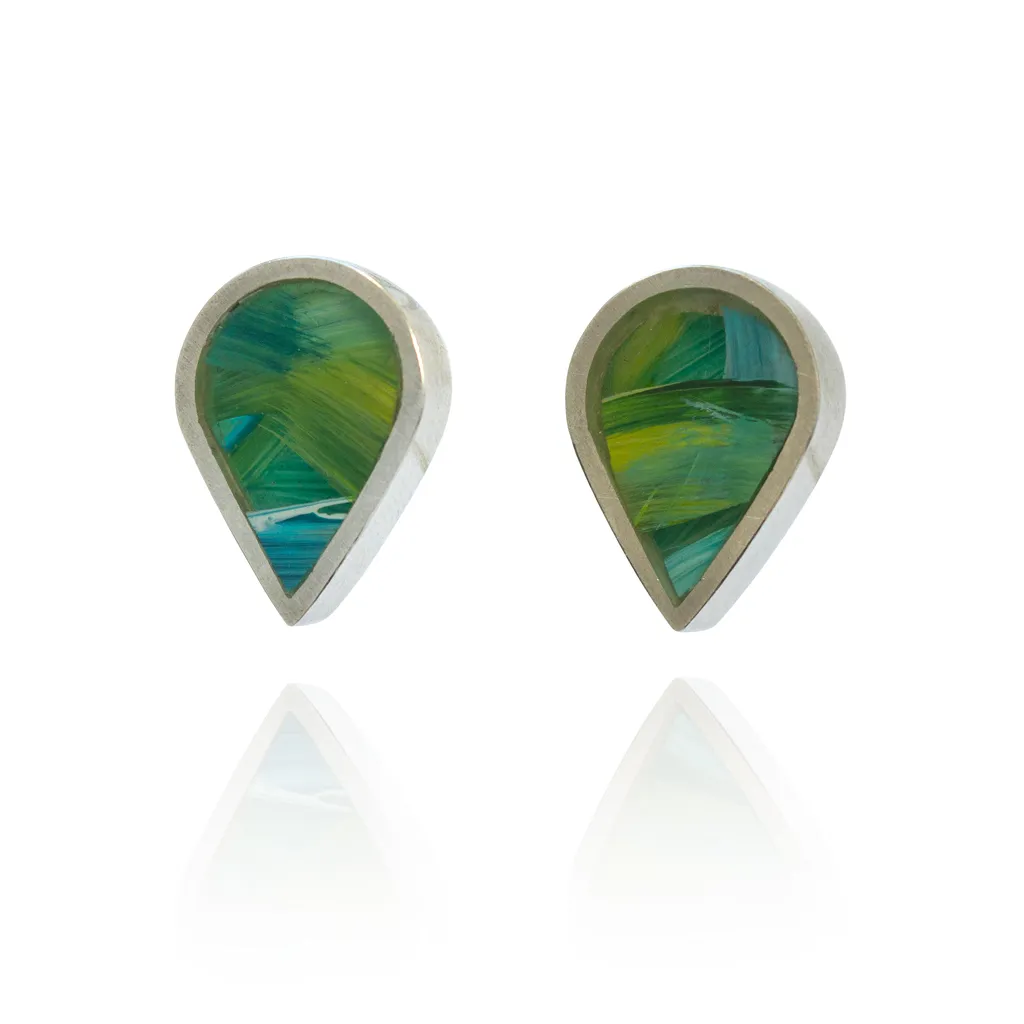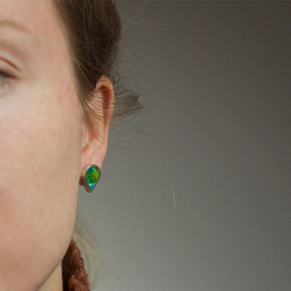 An elegant teardrop shape with flashes of green and silver leaf encased in the eco resin.