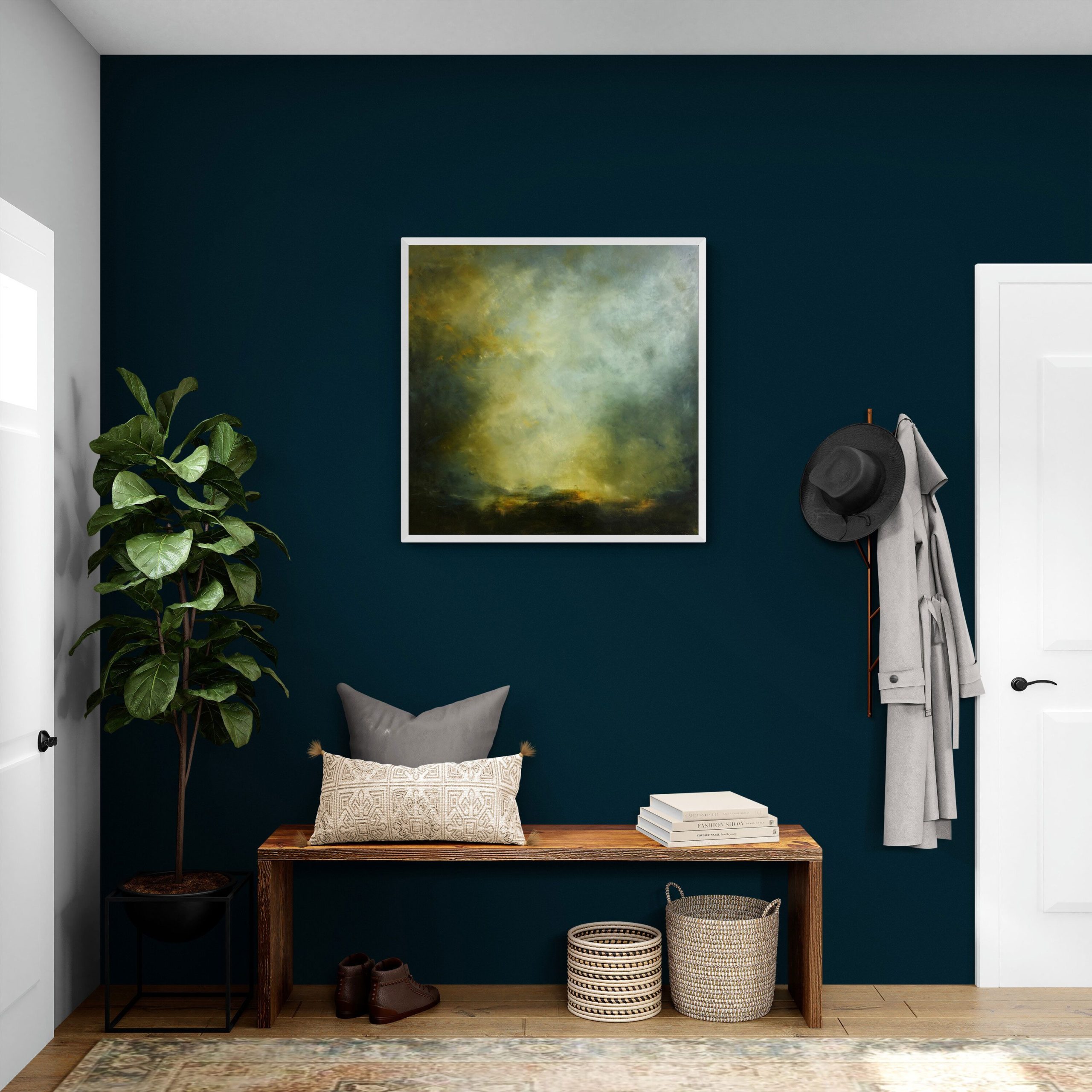 We feel Paula’s work can be hung in any modern interior as well as a country home and looks great displayed alongside studio pottery that picks out the colours found in the painting.