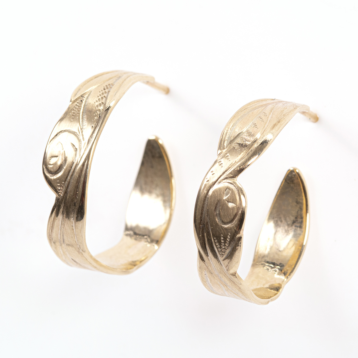 A beautiful pair of rich warm buttery yellow chased hoop earrings, The perfect pair of earrings for special occasions but also for wearing everyday.