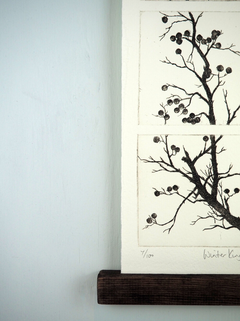 The string hands from the wooden baton frame on a single panel pin in the gallery