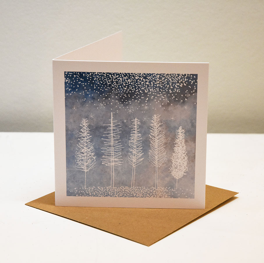 A magic wintery windswept tree scene, printed from Ruth Thorps original drawings.